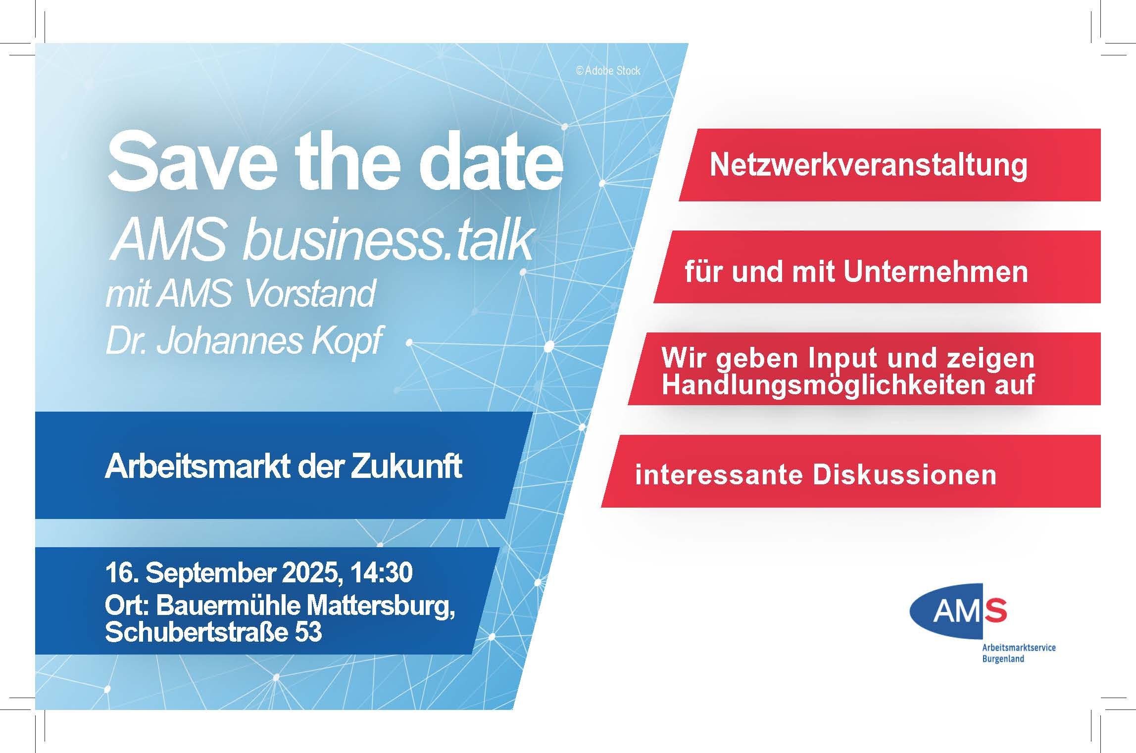 SAVE THE DATE - AMS business.talk mit AMS Vorstand Dr. Johannes Kopf